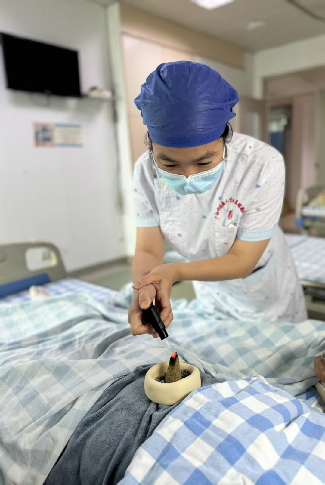 针对庞女士的情况,欧阳霞团队为她制定了以中药口服、辅以中医外治的治疗方案,如雷火灸、督脉灸、脐灸、刮痧等 。